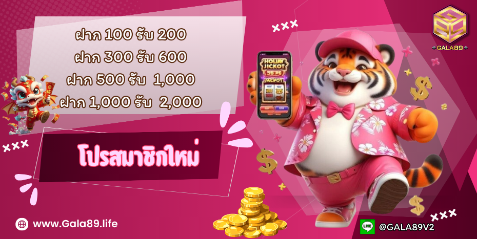 GALA89 พร้อมต้อนรับสมาชิกใหม่ทุกท่านด้วยโปรโมชั่นสุดพิเศษที่จะทำให้คุณได้สัมผัสประสบการณ์การเดิมพันออนไลน์อย่างคุ้มค่าที่สุด ด้วยโบนัสต้อนรับ 100% ที่จะเพิ่มเงินในบัญชีของคุณเป็นสองเท่าทันทีที่สมัครสมาชิกและทำการฝากเงินครั้งแรก